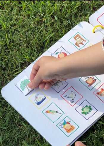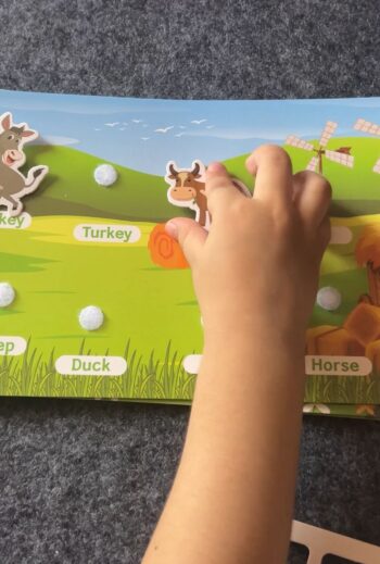 Activities like matching, sticking, and flipping strengthen little fingers for writing readiness